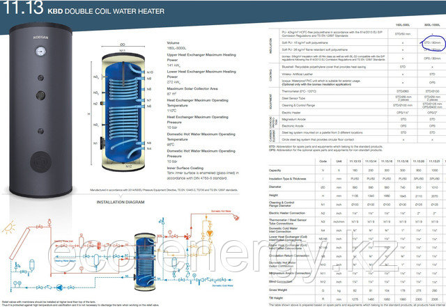 Свойства- напольные накопительные водонагреватели из стали S235JR с двумя гладкотрубными теплообменниками большой площади;