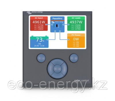 Color Control GX (CCGX) обеспечивает интуитивное управление и мониторинг для всех систем Victron. Список продуктов Victron, которые можно подключить, бесконечен: инверторы, Multis, Quattros, солнечные зарядные устройства MPPT, мониторы батарей BMV, Lynx Ion + Shunt и многое другое.